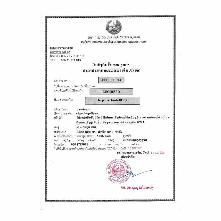 【适应症】LuciRepo 是一种突变,适用于治疗局部晚期或转移性 ROS1 急性非小细胞肺癌 (NSCLC) 转移性患者。